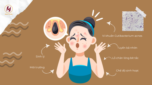 Ngoài ra, sự mất cân bằng hormone, chế độ sinh hoạt thiếu khoa học, chế độ ăn uống nhiều đường, sữa hoặc stress kéo dài cũng làm cho da mụn dễ bùng phát và khó kiểm soát.