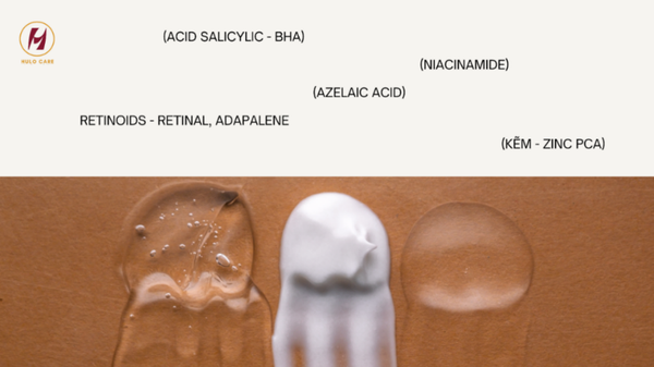 - Azelaic Acid: Có tác dụng kháng khuẩn, giảm viêm và cải thiện tình trạng sạm da sau mụn.