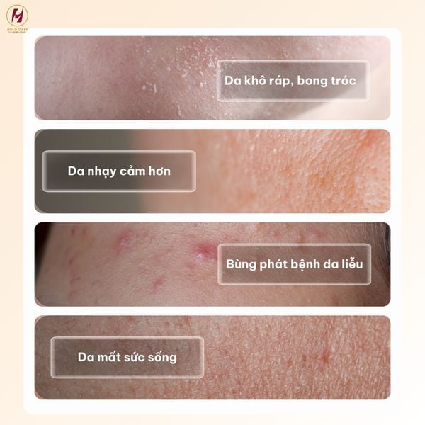 - Nguy cơ bùng phát bệnh da liễu: Tổn thương hàng rào da liên quan mật thiết đến các bệnh lý như viêm da cơ địa (atopic dermatitis), viêm da tiếp xúc (contact dermatitis) hay trứng cá đỏ (rosacea).