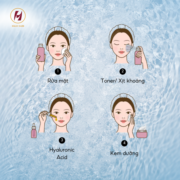 Cũng như nước chỉ thấm vào đất ẩm, HA hoạt động hiệu quả nhất trên làn da còn ẩm nhẹ. Sau khi rửa mặt, hãy dùng toner hoặc xịt khoáng, sau đó thoa sản phẩm chứa HA. Bước này giúp phân tử HA liên kết với nước trên da, tối ưu hóa khả năng cấp ẩm. Đừng quên khóa ẩm bằng kem dưỡng chứa Ceramide hoặc Niacinamide - hai thành phần “bạn đồng hành” giúp củng cố lớp lipid, ngăn nước bốc hơi.