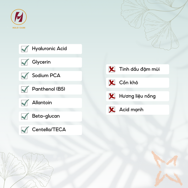 Nhóm làm dịu - phục hồi như panthenol (B5), allantoin, beta-glucan, centella/TECA giúp giảm đỏ, giảm cảm giác khó chịu quanh nốt mụn và hỗ trợ duy trì hàng rào bảo vệ da. Những hoạt chất này thân thiện, ít nguy cơ kích ứng, phù hợp kể cả khi bạn đang dùng sản phẩm treatment như tretinoin hoặc retinoid (với tần suất hợp lý).