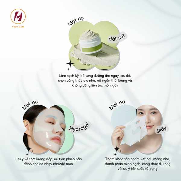Nếu da bạn đang bị mụn viêm nặng hoặc có vết thương hở, tốt nhất nên tạm ngưng dùng mặt nạ. Lúc này, ưu tiên hàng đầu là làm sạch thật dịu nhẹ, tập trung dưỡng phục hồi cơ bản và theo dõi phản ứng của da. Khi các nốt mụn đã giảm sưng tấy, mặt nạ cho da mụn sẽ trở lại thành công cụ đắc lực giúp duy trì độ ẩm, góp phần giảm kích ứng và hỗ trợ làm dịu.